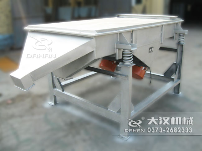 兩電機軸相對篩面在垂直方向有一傾角,在激振力和物料自重力的合力作用下,物料在篩面上被拋起跳躍或向前作直線運動,從而達到對物料進行篩選和分級的目的。適用于粒度在0.074—5mm,含水量小于7%,無粘性的各種干式粉狀或顆粒狀物料的篩分。給料粒度不大于10mm。
